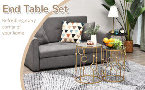 HOMCOM Round Coffee Tables Set of 2, Gold Nesting Side End Tables with Tempered Glass Top, Steel Frame for Living Room, Gold