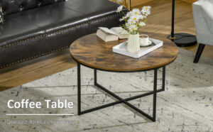HOMCOM Coffee Table, Industrial Round Side Table with Metal Frame, Large Tabletop for Living Room, Bedroom, Rustic Brow