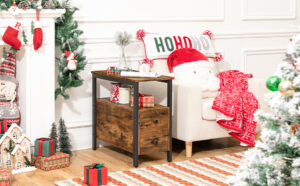 HOOBRO Narrow Side Table, Slim Bedside Table with 2 Drawers, Open Storage Shelf, Industrial Chair Side Lamp End Table for Small Space, Dark Wood Bedroom Furniture, Metal Frame, Rustic Brown EBF54BZ01