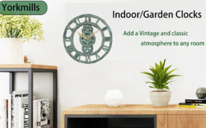 Yorkmills Outdoor Clocks for the Garden Weatherproof, Vintage Wall Clock Fence, Classic Rustic Indoor Outdoor Decorative Watch for Garden, Home, Office, Living Room, Bedroom