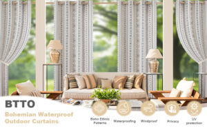 BTTO Outdoor Curtains for Patio Waterproof, Bohemian Pergola
