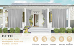 BTTO Waterproof Outdoor Curtains 100″X96″ Extra Wide,Anti-UV,Windproof,Blackout Thermal Insulated Curtain,Perfect for Pergolas,Porches,Patios