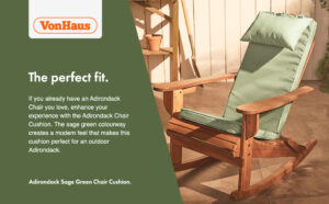 VonHaus Green Adirondack Chair Cushion – Water Resistant Outdoor Seat Pad with Headrest & Washable Removable Cover, Sage Green Padded Outdoor Chair Cushion, 80cm x 43cm x 5cm