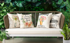 JOTOM Outdoor Decorative Cushion Covers 45×45 cm Waterproof Throw Pillow Covers Outdoor Cushions Butterfly Patio Garden Flower Pillowcases for Bench Sofa Indoor Decoration Set of 4 (Insects and Plant)