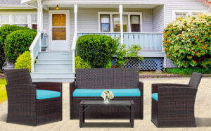 Rattan Garden Furniture 4-Seater Outdoor Furniture Sets All-Weather Brown Wicker Sofa Patio conversation set with Cushions Glass Table