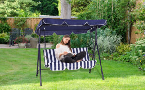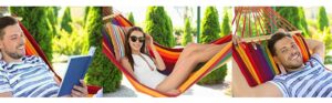 CASART Folding Camping Hammock, Portable Outdoor Swing Bed with Metal Frame, Carry Bag, Anti-Slip Buckle & Storage Pocket, Outing Hiking Lounge Canvas Hammock for Beach Patio Garden Yard Home (Black)