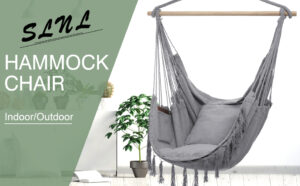 Hammock Chair Hanging Rope Swing, Max 330 Lbs, 2 Cushions Included, Large Macrame Hanging Chair with Pocket, Quality Cotton Weave for Superior Comfort, Durability (Light Grey)