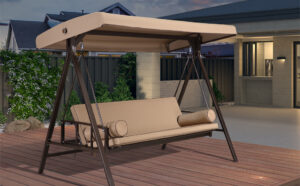 PURPLE LEAF Garden Swing Chair 3 Seater with Adjustable Backrest, Outdoor Swing Bench Bed Hammock loungers with Adjustable Canopy,Weather Resistant Steel Frame, Cushions and Pillow for Patio, Bronze