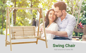 Outsunny 2 Seater Garden Swing Seat Larch Wood Swing Chair Hammock Bench Lounger – Nature