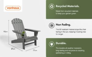VonHaus Adirondack Chair – Fire Pit Chair Made from Durable All Weather Eco-Friendly Recycled Plastic – Traditional Wood Effect – Outdoor Garden Furniture for Patio, Decking, Lawn – Grey