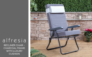 Alfresia Garden Recliner Chair in Charcoal with Luxury Cushion | Adjustable Reclining Outdoor Chair | Foldable Garden Chair | Choice of Colours (Grey)