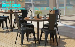 zoyo Outdoor Garden Chairs Dining Metal Chairs Bar Chairs Beach Camping Chair Patio Stackable Chair Set of 4 for Dining Room Living Room Kitchen Restaurant Bar Picnic Indoor Grey