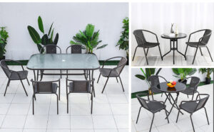 DKIEI 4 Pcs Outdoor Black Garden Wicker Rattan Bistro Chair Metal Frame Woven Seat, Brown, 72 * 56 * 54.5cm