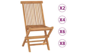 idaXL 4x Solid Teak Wood Folding Garden Chairs Outdoor Seats Patio Furniture Dinner Seating Foldable Home Dining Room Wooden Chairs