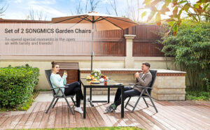 SONGMICS Set of 2 Folding Garden Chairs, Outdoor Chairs with Durable Aluminum Structure, 8-Angle Reclining Backrest, Max. Capacity 120 kg, Black GCB29BK