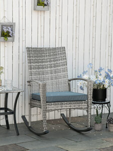 Outsunny Rattan Rocking Chair Rocker Garden Furniture Seater Patio Bistro Relaxer Outdoor Wicker Weave with Cushion – Light Grey