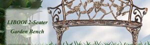 2-Seater Garden Benches, Metal Outdoor Bench, Antique Rose Bench Porch Park Chair Seater, Furniture Patio Bench Seating Family Chair with Backrest Ergonomic Armres