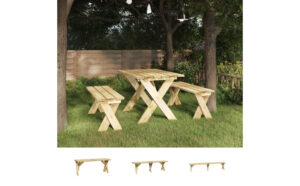 idaXL Impregnated Pinewood Garden Bench Outdoor Patio Terrace Backyard Lawn Park Furniture Vintage Wooden Bench Seating Seat Chai