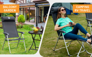 Timber Ridge Folding Garden Chair, High Back Camping Deck Chair with Adjustable Backrest Padded Headrest, Lightweight Foldable Garden Seat Recliner Outside Patio Camping Beach Kitchen Office