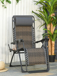 Outsunny Outdoor Zero Gravity Folding Sun Lounge Chair with Headrest, Recliner Chair w/Cup and Phone Holder for Garden, Balcony, Deck, Grey