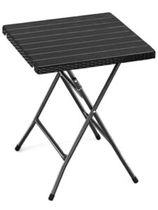 URBN GARDEN Black Rattan Square Coffee Table with Wood Look Top Perfect for Outdoor Bistro, Garden, and Balcony End Spaces, Style & Functionality to Outdoor Living Areas