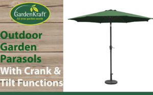 GardenKraft 2m Outdoor Garden Parasols/Tilt & Crank Mechanism / 6 Steel Ribs/UV 30 Protection/Durable Polyester Material