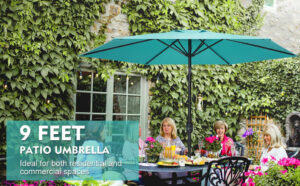 GlamHaus Garden Parasol Tilting Table Umbrella, UV40+