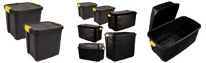 STORM TRADING GROUP Storage Container Boxes Black Trunks With Lids Heavy Duty Large Wheels Yellow Handles Great for Garden, Indoor & Outdoor (145 Litre (WITH WHEELS), 1 Storage Box)
