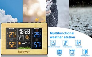 Kalawen Wireless Weather Station, Digital Color Weather Station with Outdoor Sensor, Digital Alarm Clock,Temperature, Humidity Monitor, Weather Forecast for Home Bedroom Garden,Yellow