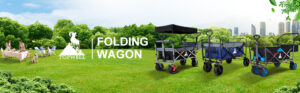 TOPWELL Garden Collapsible Wagon All-terrain Trolley Heavy Duty Foldable Beach Wagon, Capacity of 264lbs Garden Cart, Black/Blue
