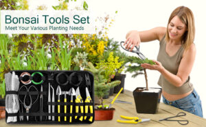 Nisorpa Bonsai Tools Set 10 Pieces Garden Trimming Kit with Nylon Case Carbon Steel Bonsai Scissors Set Bonsai Pruning Kit Supplies Scissors, Cutter, Rake, Hook, Broom, Training Wire Se