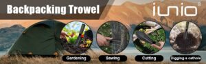 iunio Garden Trowel, Multi Tool Camping Trowel Hand Shovel with Paracord Handle & Carrying Pouch for Metal Detecting, Digging, Gardening, Planting, Outdoor, Black