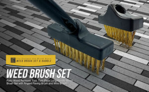 Patio Weed Remover Tool, Twin Pack Long Handle Weed Brush Set with Angled Paving Brush and Wire Broom to Remove Weeds and Moss Build-Up from Patio, Block Paving and Driveway (Complete Weed Brush Set)