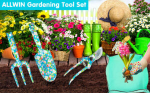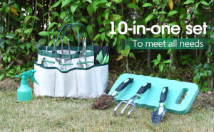 Colwelt Garden Tools Set, 8 Piece, Heavy Duty Gardening Tools with Wooden Handle, Including Garden Tote, Kneeling Pad, Gloves, Pruner, Trowel, Tulip Trowel, Cultivator – Gardening Gifts For Women Me