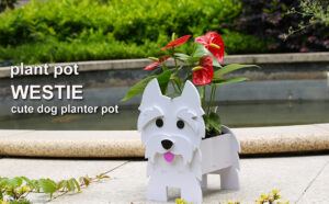 Gochoi Small Westie Gifts Dog Planter,PVC Animal Plant Pots Outdoor Indoor Garden Planters for Succulent,Cute Rectangular Plant Flower Pots Outside Holder Office Home Decor S Westie