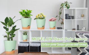 MOFELON Plant Pots Indoor, 20/17.5/16.5/15/14/12.5cm Self Watering Plant Pots with Drainage Holes, Saucer and Reservoir, Indoor Modern Simple Decorative Planters for All Flower Plant, Gree
