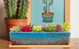 Succulent Plant Pots, 30 CM Long Rectangle Succulent Plant Pots with Drainage Tray, Large Ceramic Cactus Flower Plants for Indoor/Outdoor Plants Shallow Bonsai Window Box Home Decor, Red