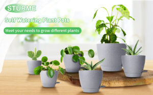 STURME Self Watering Plant Pots Indoor,20/17.5/16.5/15/14/12.5cm Plastic Plant Pots with Drainage Holes,Saucers and Reservoir,Suitable for All Plants Indoor Modern Fashion Decorative Grey Plant Pots.
