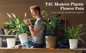 T4U 15.5CM Plant Pots Indoor Pack of 6, White Plastic Pot with Saucer, Modern Decorative Flower Pot with Drainage, Tall Nursery Planting Pot for All Houseplants, Succulent, Snake, Orchid, Aloe, Lily