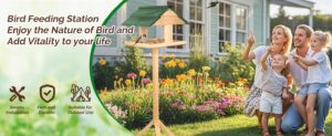 Discoball Wooden Bird Table Garden Birds House Feeding Station Platform Bird Shelter Wood Bird Feeder with Sturdy Tripod Stand – Spacious Platform for Multiple Birds