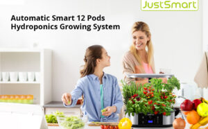 JustSmart WiFi 12 Pods Hydroponics Growing System with APP Control, Smart Indoor Garden Planter with 5L Water Tank, Herb Garden with 30W LED Grow Lights, 30 Inches Height Adjustable, Automatic Time