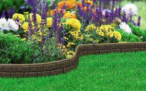WINSOME Garden Edging Border – Cobbled Stone Effect Lawn Edging for Garden Fence – Pack of 10 Flower Bed & Grass Plant Plastic Garden Fencing (Grey, 2.5 Meter 97″)