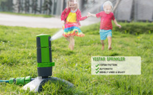YESTAR Automatic Garden Sprinkler, Lawn Water sprinkler with PT Base, 30-360 Degree Auto Rotating Gear Drive & 3 in 1(Jet, Shower, Flood) for Watering Lawn Plants Flowers Veggies and More