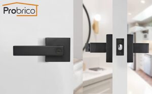 2 Pack Probrico Interior Privacy Door Lever for Bedroom Stainless Steel Bathroom Flat Reversible Door Handle Square Door Lock Set Without Key Black