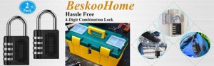 Combination Padlock Long Shackle Lock -BeskooHome 6.5cm Shackle Waterproof 4 Digit Resettable Combination Lock for School, Gym, Outdoor Shed Locker, Hasp Cabinet, Gate – 2 Pack