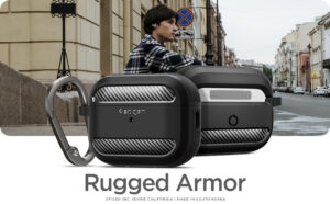 Spigen Rugged Armor Case Compatible with Airpods 4 (2024) – Matte Black