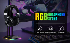 KALAHOL RGB Headphone Stand, Gaming Accessories Headset Stand with 2 USB and 1 Type-C Ports, Cool LED Headset Holder for PC Gamer Headphone Accessories for All Headphones (Black)