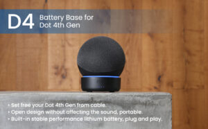 GGMM D4 Dot Battery Base Stand Accessories, Battery Base for Dot 4th Generation Smart Speaker,Power Supply 6 Hours playtime, Black (Dot not Included)