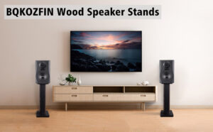 BQKOZFIN 23.62 Inch (60CM) Wood Speaker Stands, Stands for Home-Cinema HiFi Bookshelf Box and Satellite Speakers Wood Grain Enhanced Audio Listening Experience for Home Theaters, 1 Pai
