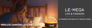 LEMEGA DTS2 Bedside Lamp with Wireless Charger,Bluetooth Alarm Clock Radio,Sound Machine,Built-in Battery,LED Night Light,Dimmable Table Eye-Caring Reading Light for Bedroom/Office/Dorm